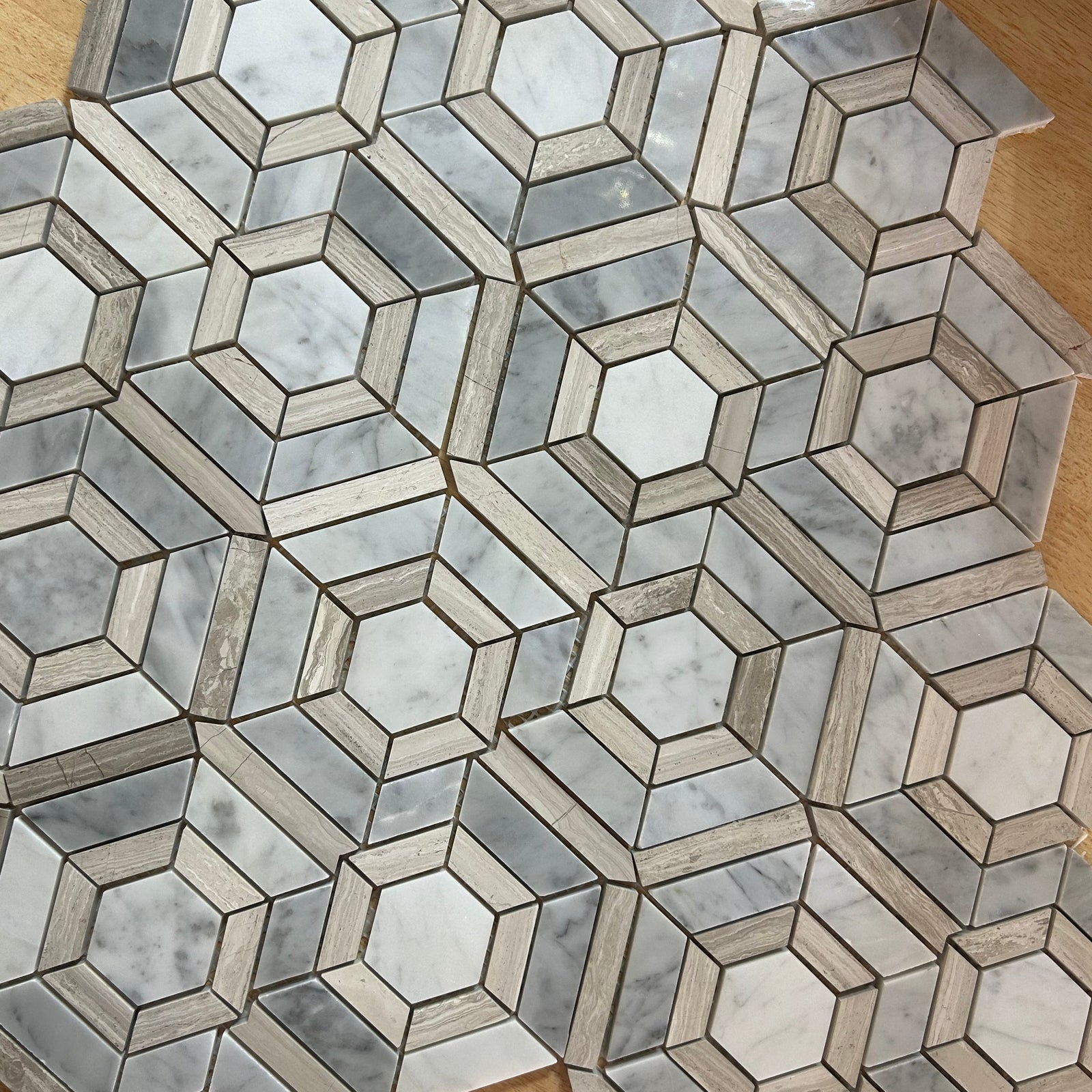 Upgrade your interiors with these hexagonal porcelain mosaic tiles, designed to combine elegance and durability. Perfect for creating a kitchen and bathroom splashbacks, Feature Walls Suitable Conservatory, Hallway, Kitchen, Living Room, Patio, Utility, decorative floors, shower floors, and border.