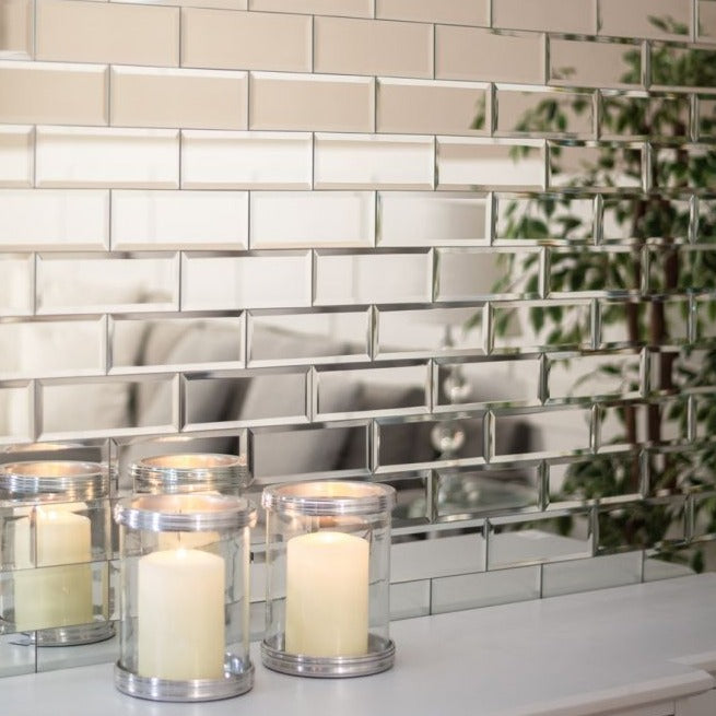Full-Bodied Metro Mirror Glass Mosaic Tiles with Beveled Edges