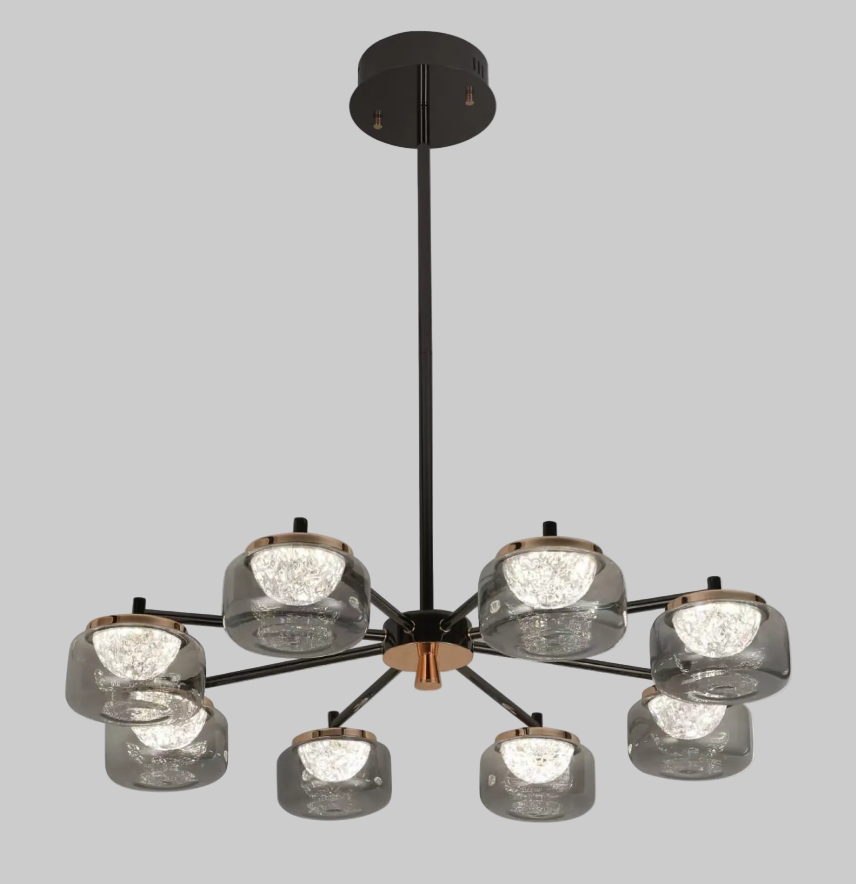 Modern Black & Smoke Glass LED Chandelier – Luxury Ceiling Light